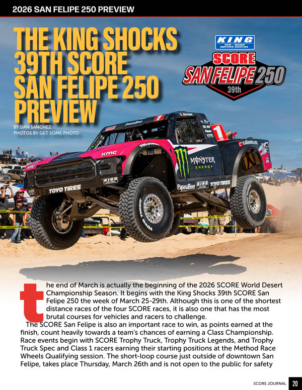 With pre-running starting March 9, 2024, for the King Shocks 37th SCORE San Felipe 250, SCORE President/Race Director Jose A. Grijalva and Co-Race Director Rodolfo Fernandez put together another memorable race course to challenge the world’s best desert racers.